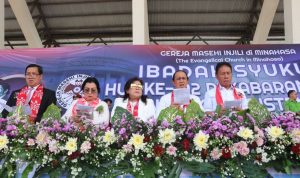 Minsel.Sulut.Teraskata.com_Bupati Minahasa Selatan Franky Donny Wongkar, SH., (FDW) menghadiri Ibadah Syukur Hari Ulang Tahun Ke-192 Pekabaran Injil dan Pendidikan Kristen GMIM TAHUN 2023, bertempat di Stadion Maesa Tondano. Senin, 12 Juni 2023