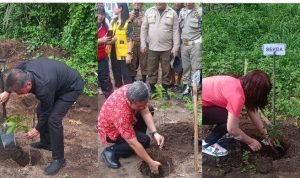 Setelah peletakan batu pertama dilanjutkan dengan penanaman pohon di lokasi Huntap dalam rangka hari ulang tahun Kabupaten Minahasa Selatan yang Ke-20.