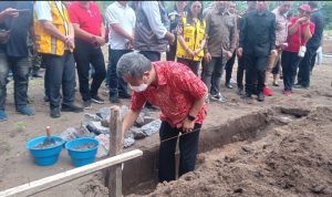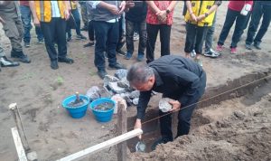 Minsel.Teraskata.com-Bupati Minahasa Selatan (Minsel) Franky D Wongkar, SH (FDW) di dampinggi Wakil Bupati Petra Y Rembang, MT.h (PYR) Melakukan Peletakan batu pertama pembagunan Hunian Tetap (Huntap) bagi korban bencana abrasi pantai Amurang serta melaksanakan penanaman pohon, di Desa Rumoong Bawah Kecamatan Amurang Kabupaten Minsel Jumat, 3 Februari 2023.