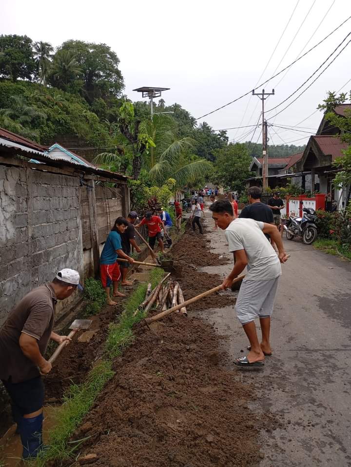 Minsel.Teraskata.com_Pemerintah Kelurahan Ranomea Kecamatan Amurang Timur bersama masyarakat melakukan kerja bakti bersama untuk mengantisipasi cuaca ekstrim yang terjadi di wilayah Kabupaten Minahasa Selatan hari ini 22 Januari 2024.