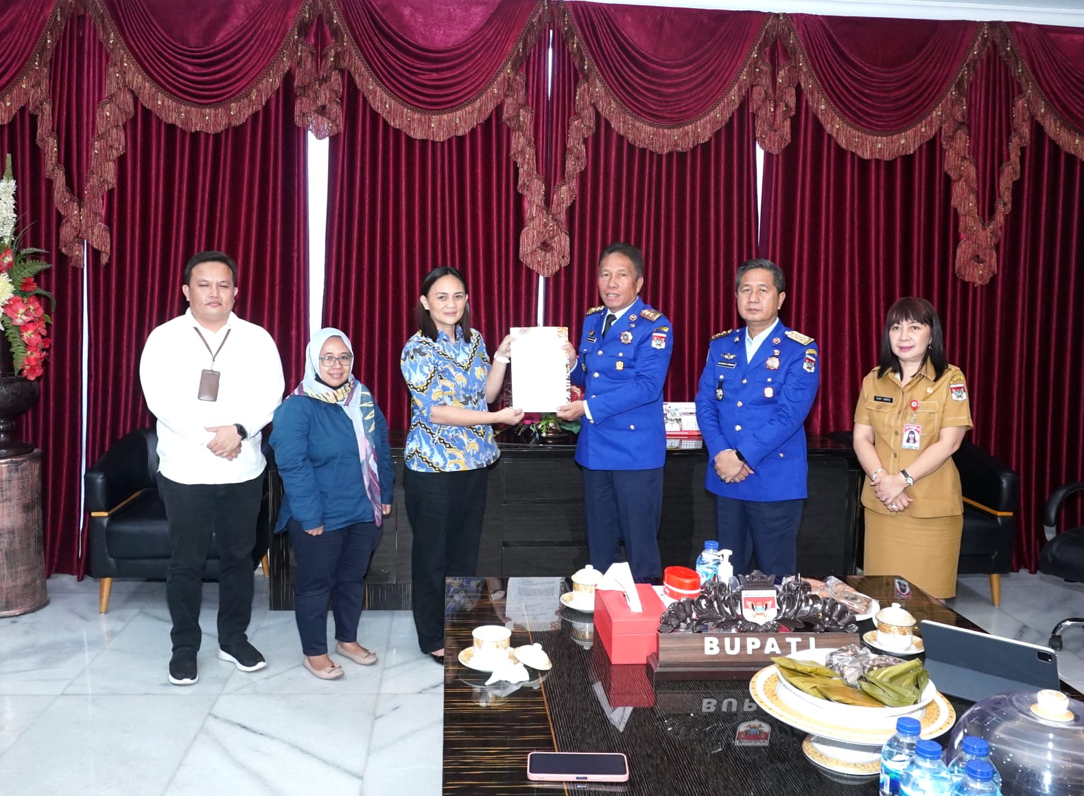 Minsel.Sulut.Teraskata.com-Bupati Minahasa Selatan Franky Donny Wongkar,SH (FDW) yang didampingi Wakil Bupati Minahasa Selatan Pdt. Petra Yani Rembang (PYR) menerima kunjungan dari Kepala Kantor Perwakilan Ombudsman Republik Indonesia Provinsi Sulawesi Utara di Kantor Bupati Minahasa Selatan Senin, 06 Maret 2023 dalam rangka penyerahan Penilaian Kepatuhan Pemerintah Daerah terhadap Pelayanan Publik. Turut hadir dalam Pertemuan Tersebut Sekretaris Daerah kabupaten Minahasa Selatan Glady Nova Lynda kawatu, SH, MSi., Para Asisten dan sejumlah Kepala Perangkat daerah.